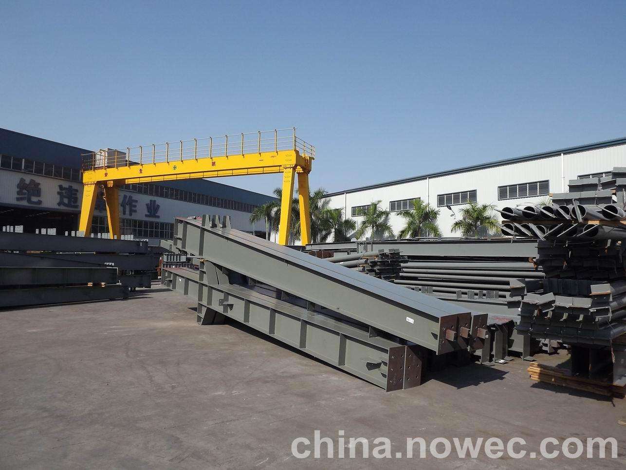 条状单元一般沿长跨方向分割,其宽度约为1~3个网格,其长度为l2或l2/2(l2为短跨跨距)。块状单元一般沿齐齐哈尔网架平面纵横向分割成矩形或正方形单元。每个单元的重量以现有起重机能胜任为准。条(块)与条(块)之间可以直接拼装,也可空一网格在高空拼装。由于条(块)状单元是在地面拼装,因而高空作业量较高空散装法大为减少,拼装支架也减少很多,又能充分利用现有起重设备,故较经济。这种安装方法适用于分割后网架的钢度和受力状况改变较小的各类中小型网架,如两向正交正放四角锥、正放抽空四角锥等网架。